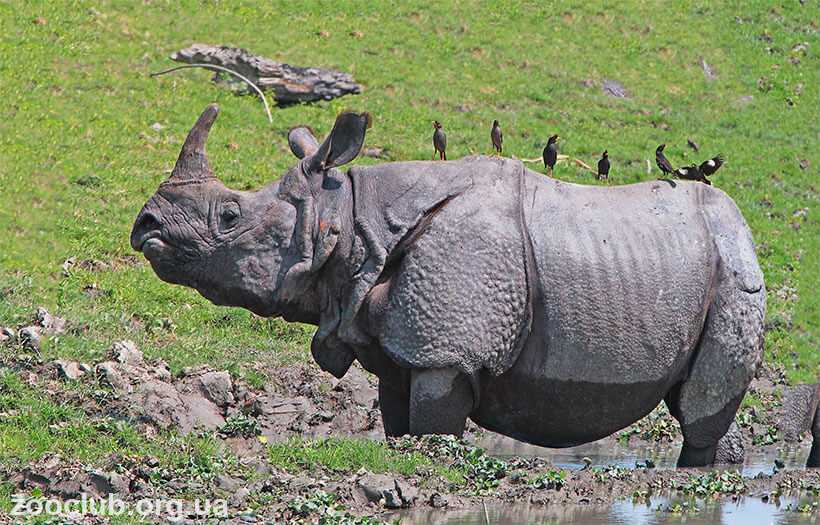 С насекомыми носорогам помогают бороться птицы, которые буквально селятся у них на спине. Это волоклюи и буйволовы скворцы. Они не только питаются насекомыми и клещами со спины животного, но и могут подсказать об опасности. По некоторым данным со спины носорога насекомых едят не только птицы, но и черепахи, которые так и ждут, когда носорог усядется к ним в лужу.