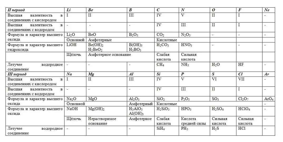 Проанализировав изменения свойств элементов II и III периода, можно сделать выводы, которые Д. И. Менделеев записал в виде периодического закона.
