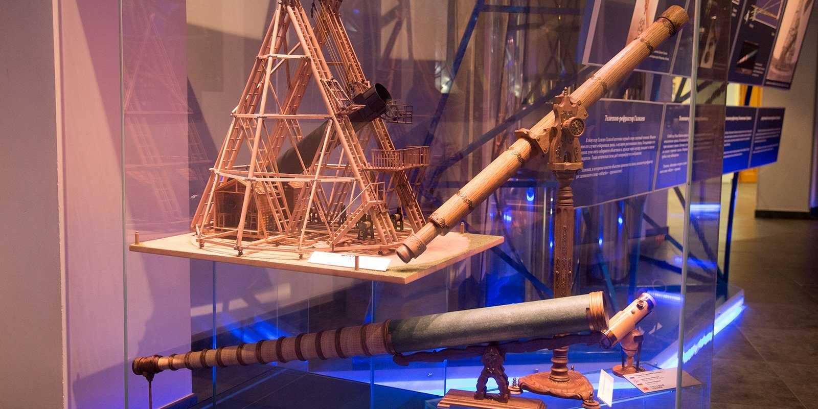 Небольшой телескоп-рефлектор Ньютона, воссозданную копию телескопа Галилея и многие современные модели телескопов можно увидеть в зале музея Урании.