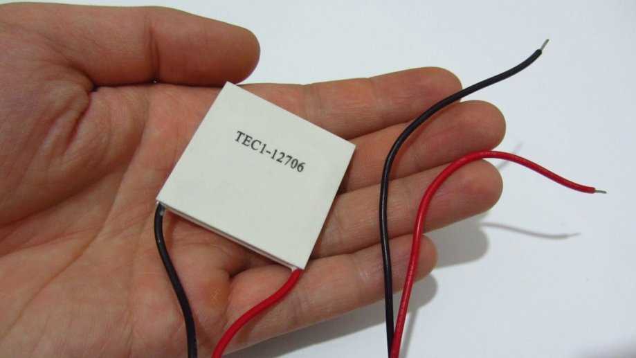 - Элемент Пельтье, у него должны быть следующие параметры: размер – 40*40*3,4, максимальный ток – 10 А, напряжение – 15 Вольт, маркировка – TEC 1-12710.