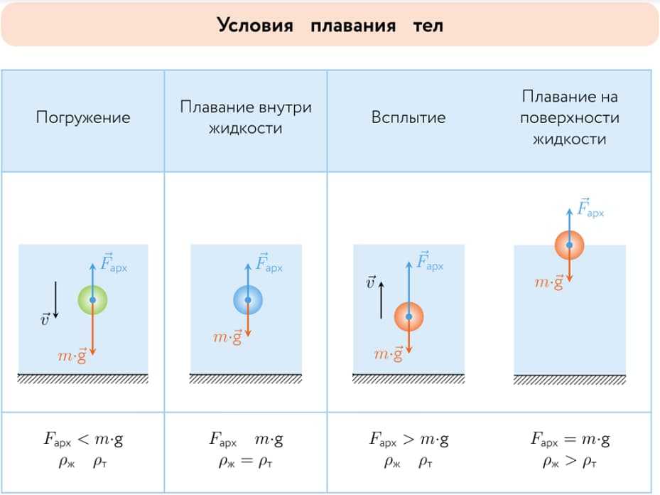 Из закона Архимеда вытекают следствия об условиях плавания тел.